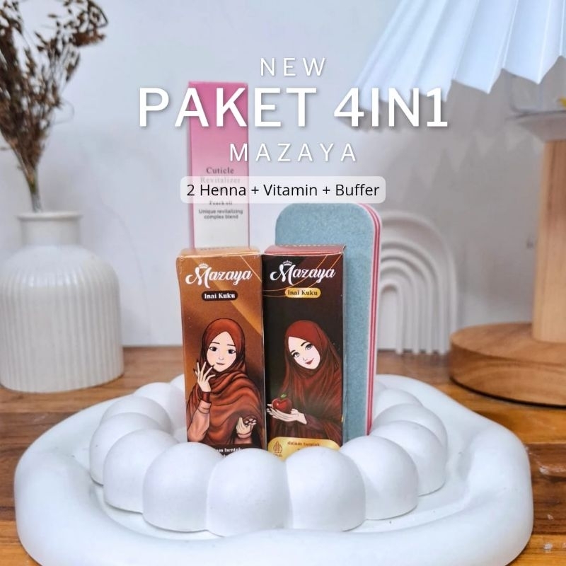 PAKET OMBRE 4IN1 INAI KUKU MUSLIMAH MAZAYA HENNA + SERUM VITAMIN + BUFFER PENGKILAP KUKU KUTEK