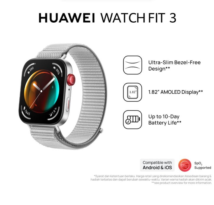 [Mall] Huawei Watch Fit 3 Smartwatch Ultra-slim Bezel-free Design 1.82" Amoled Display All-round Fitness Management