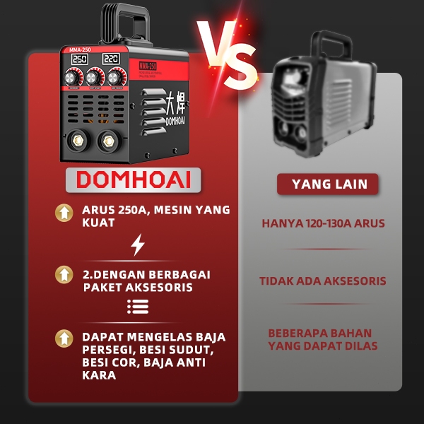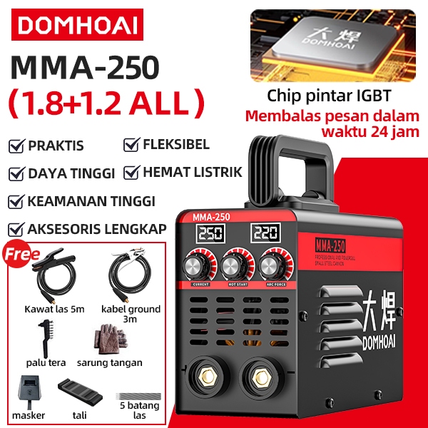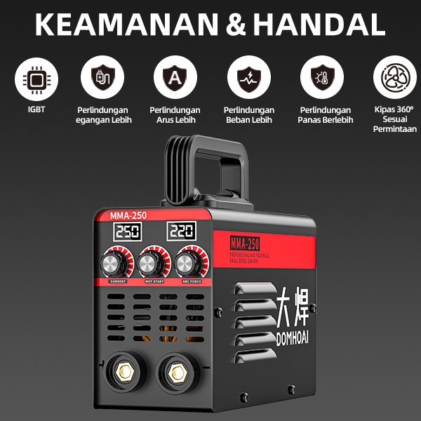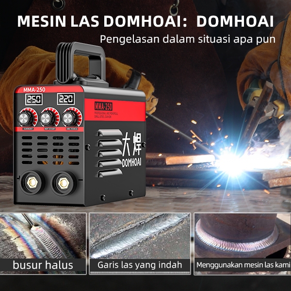 DOMHOAI Mesin Las Inverter MMA-250 Las Listrik trafo las Portabel Welding Machine Gasless Mesin Las Tampilan Digital Def