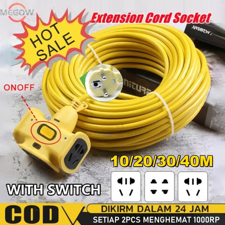 10M 20M 30M 40M KABEL SAMBUNGAN MULTI FUNGSI /COLOKAN KABEL LISTRIK /KABEL KERJA BENGKEL PANJANG KABEL 2500W