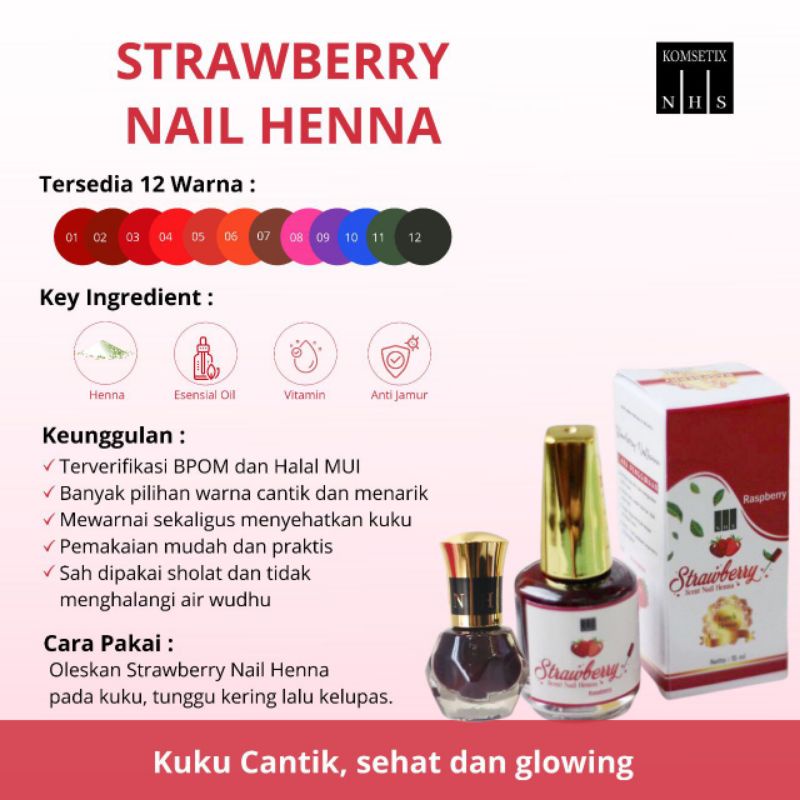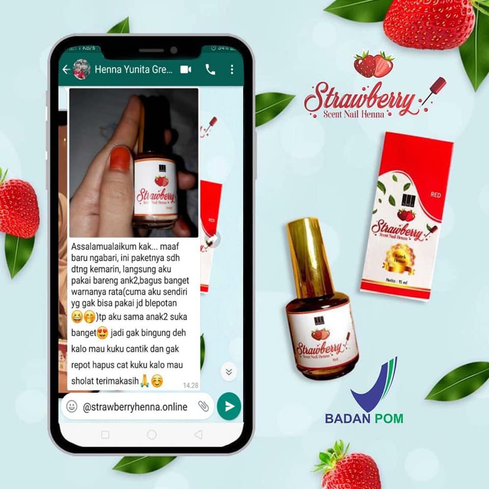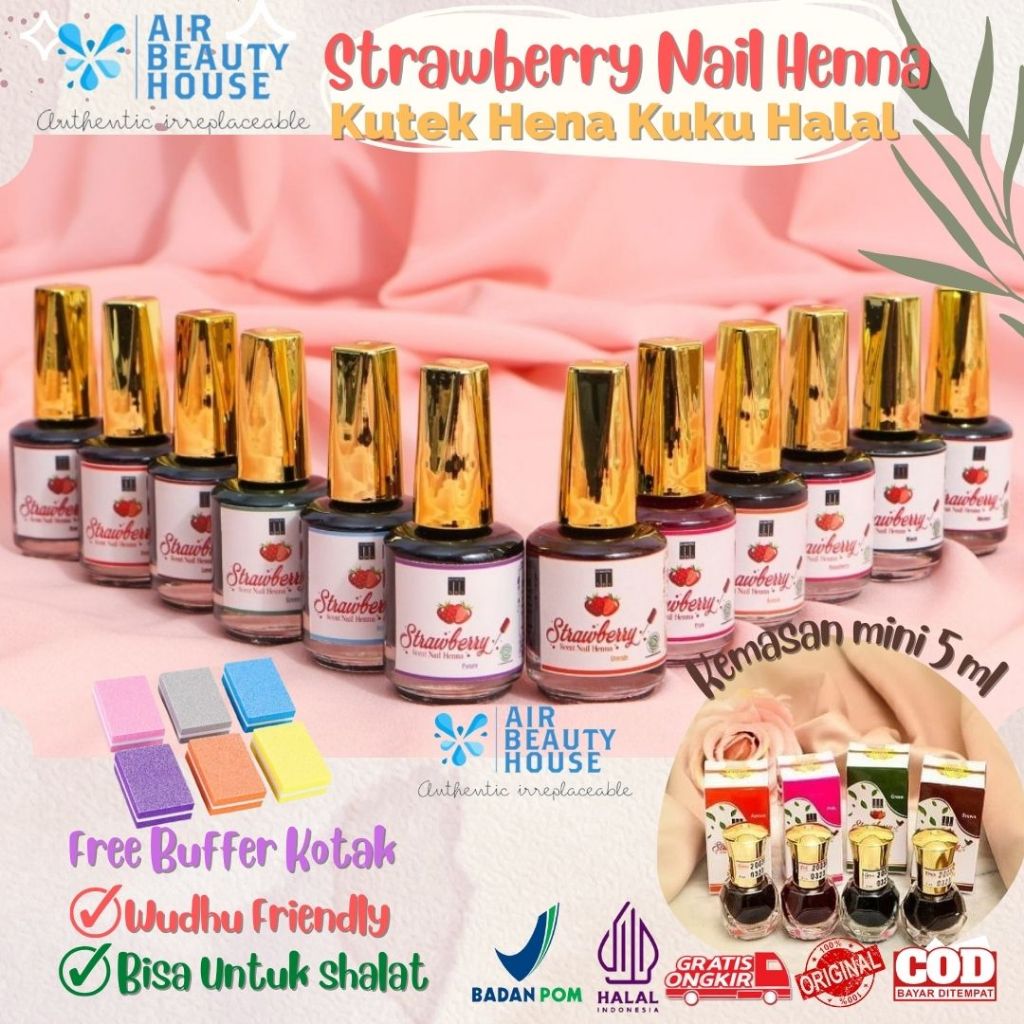 (Free Buffer) STRAWBERRY NAIL HENNA ORIGINAL KAN MINI 5 ML DAN REGULER 14 ML / KUTEK HENA HALAL MUSLIMAH / WUDHU FRIENDL