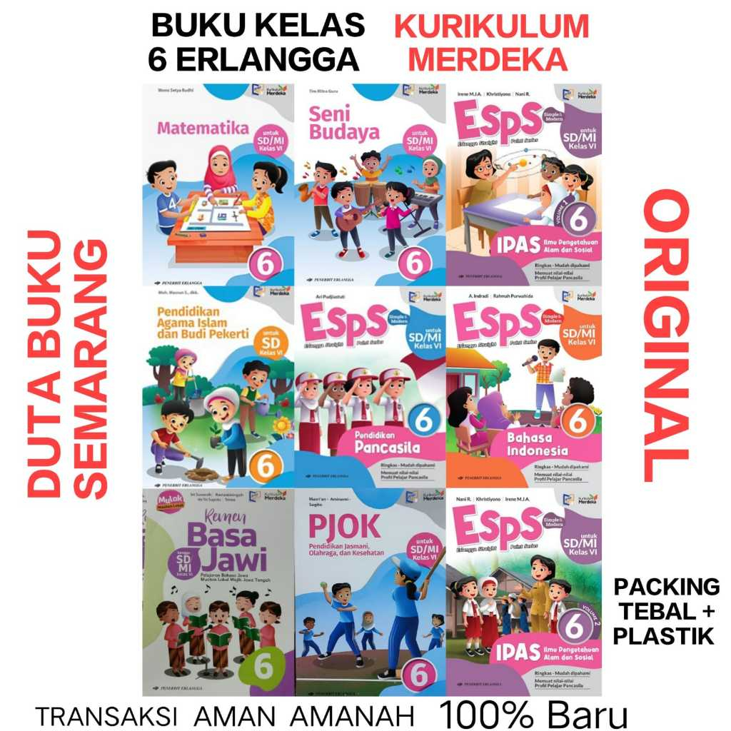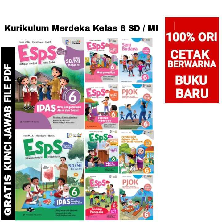 BUKU ESPS KELAS 6 : PENDIDIKAN PANCASILA BAHASA INDONESIA IPAS VOL 1 2 AGAMA ISLAM, PJOK SENI BUDAYA DAN MATEMATIKA KELA