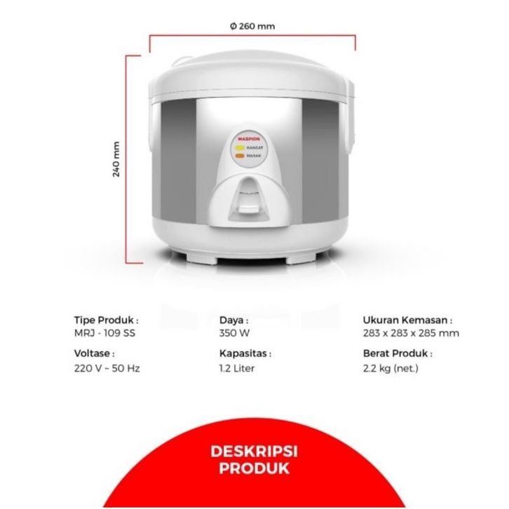CREDIT STORE MEJIKOM RICE COOKER MAGIC COM RICECOOKER MASPION MRJ-109SS 1,2 LITER MRJ 109 SS STAINLESS