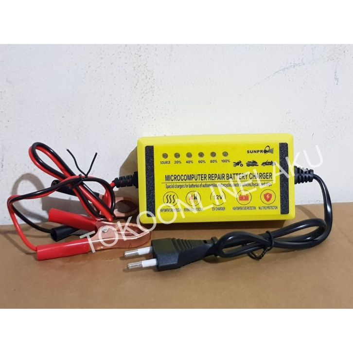 PROMO Pengisi Daya Aki Sunpro 12V 2A / Charger Aki Mobil, Motor, Aman, dan Hemat Energi