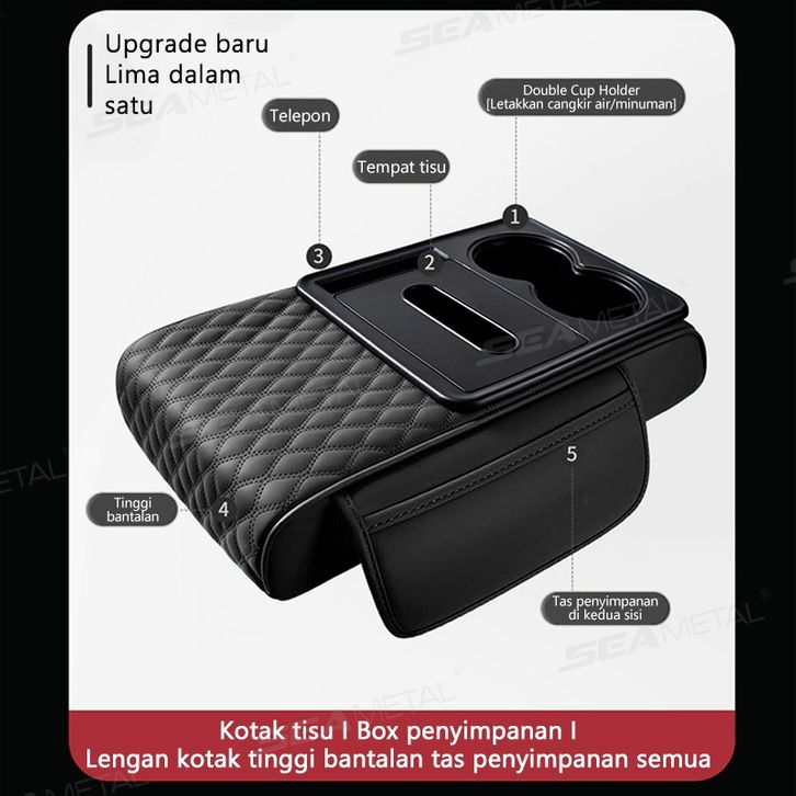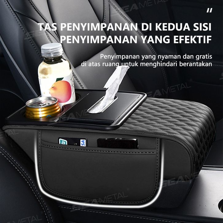 Car Seat Organizer Original SEAMETAL Armrest Pad Mobil Tempat Tisu Mobil Tempat Botol 4 In 1 / Console Box Storage / Ko