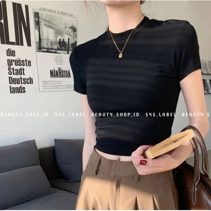 PREMIUM Hanna Crew Neck Cropped Stretchy T-Shirt - XS-XXL - Basic Slim T-Shirt - Crop Top Kaos Pendek Wanita Premium C3