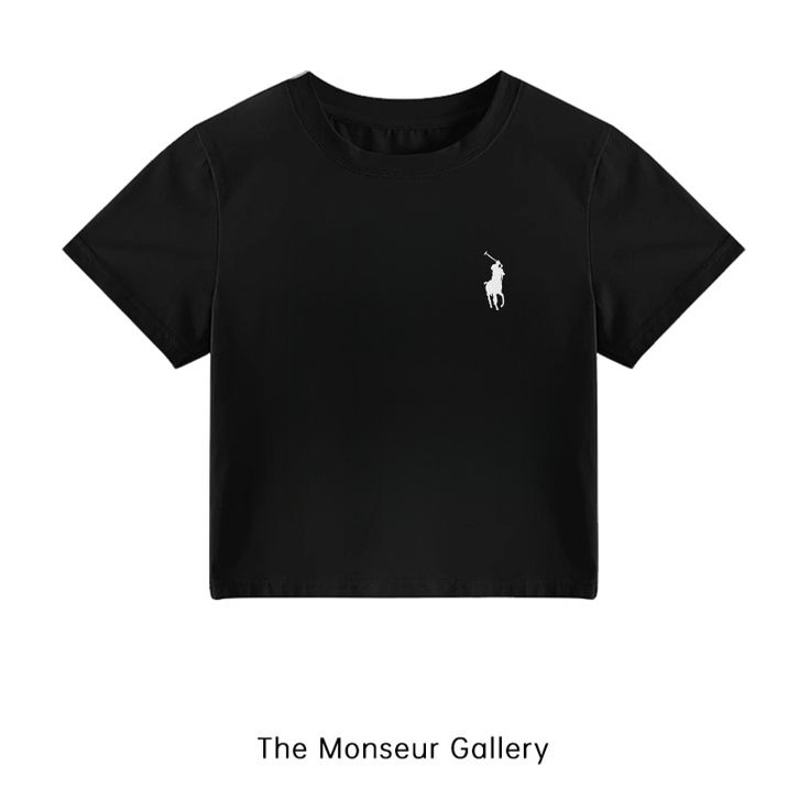 The Monseur Gallery T-shirt Crop Top Kaos Wanita Crop Top Korea Ralph Lauren Pony Logo | Baju Croptee Putih Korea