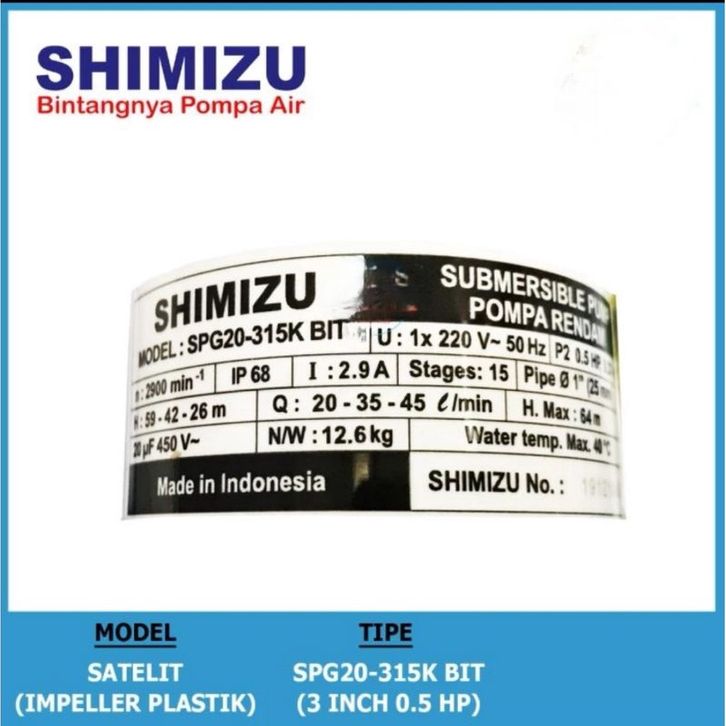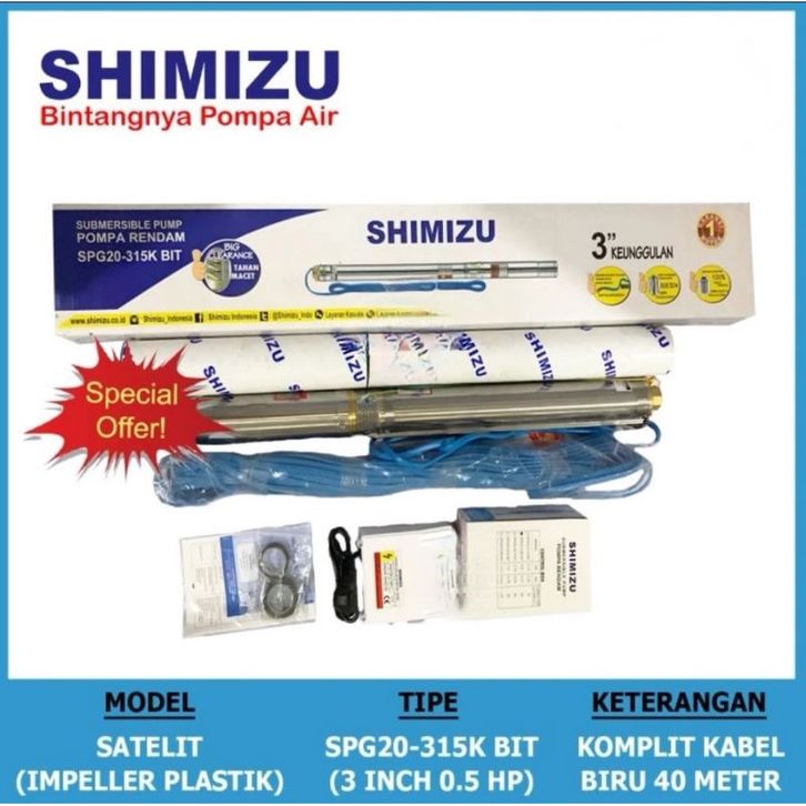 pompa satelit 3" inch shimizu SPG20-315K 0.5 HP 370watt plus kabel Original tersambung