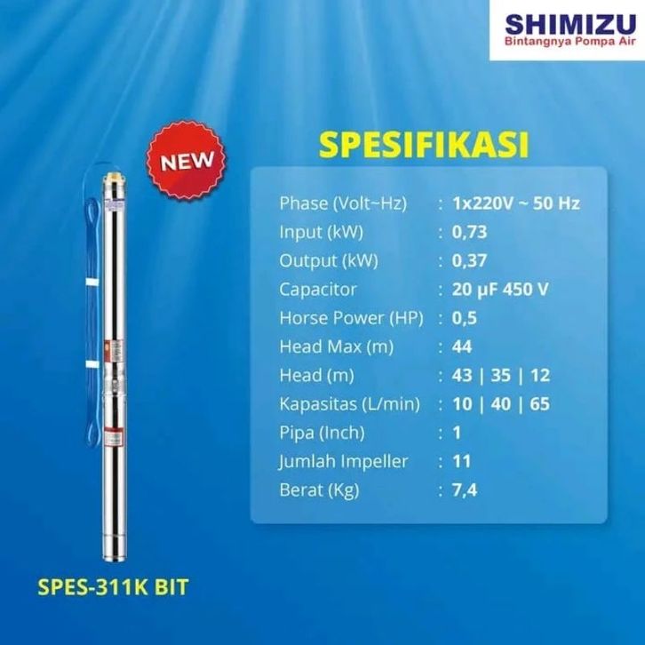 POMPA AIR SATELIT SHIMIZU SPES-311K BIT 0.5 HP + KABEL /POMPA SUBMERSIBLE 1/2 HP 3 INCH