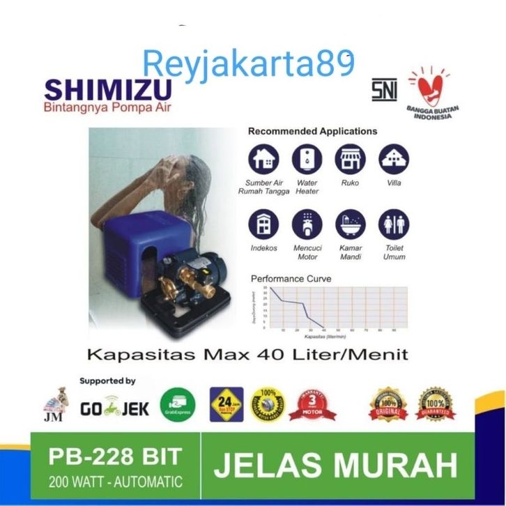 Pompa Air pendorong Booster Otomatis Shimizu PB 228 BIT / PB 228 BIT Sudah ada kabel colokan PROMO
