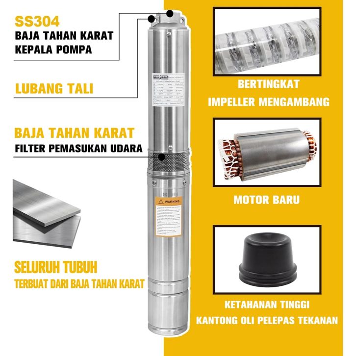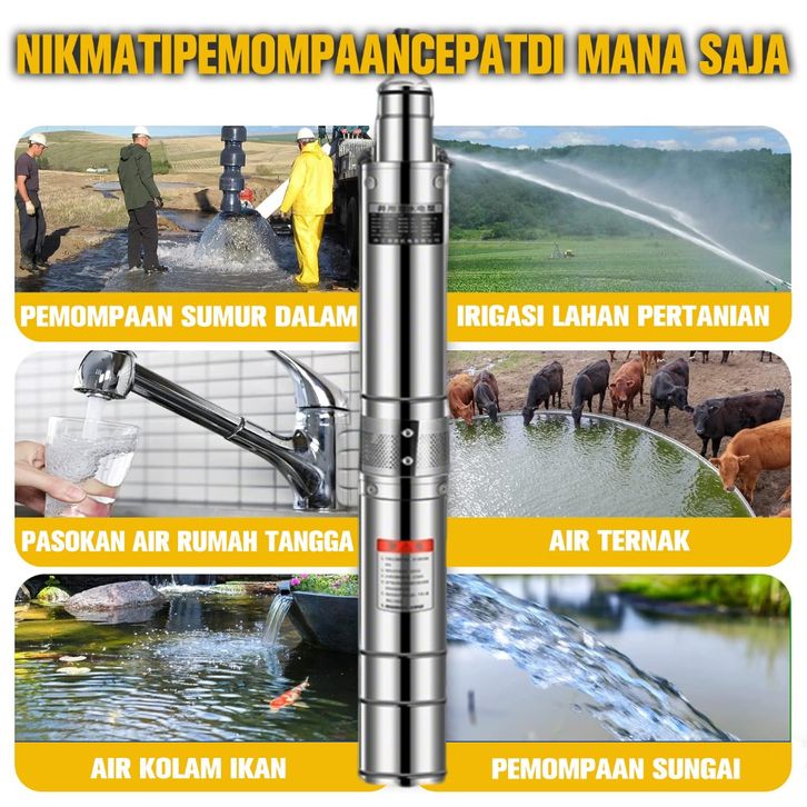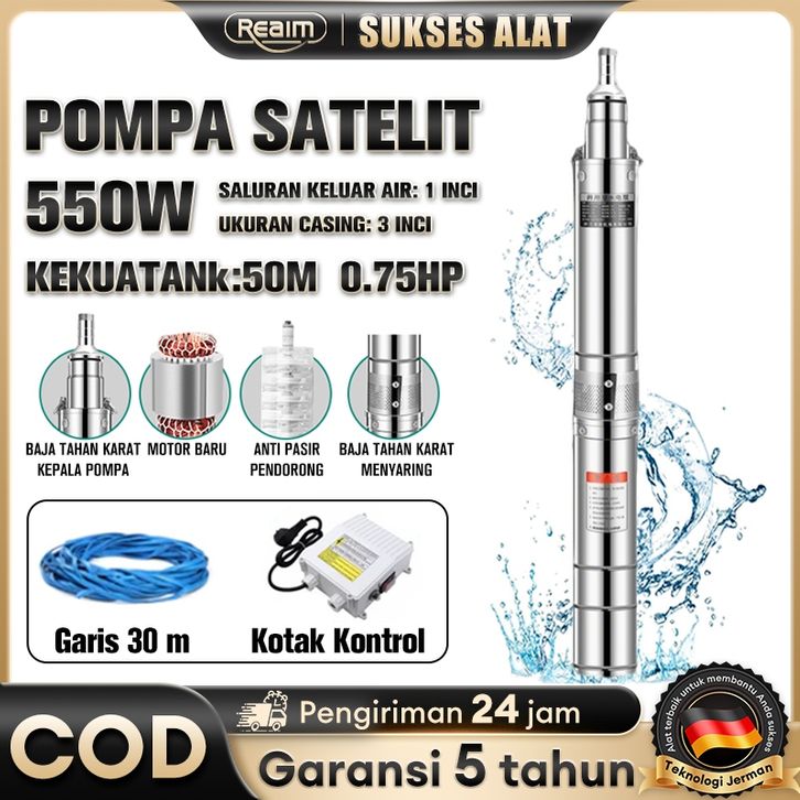 Reaim 550W Pompa Satelit 0.75HP Pompa Air Sumur Dalam Stainless Steel Submersible Pump Pompa Air Satelit