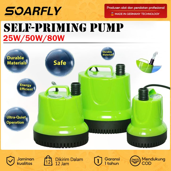 Soarfly Self-Priming Pump Daya Hisap Tinggi 25W/50W/80W/100W Pompa Air Celup Aquarium Kolam lkan Submersible Water Pump