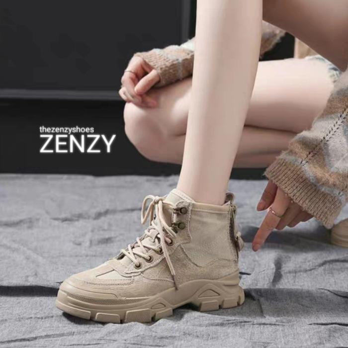 Tzs Zenzy Timo Boots Korea Design - Sepatu Boots Wanita - Sepatu Boots Korea Fashon Cewek Canvas High Karet Shoes - Size