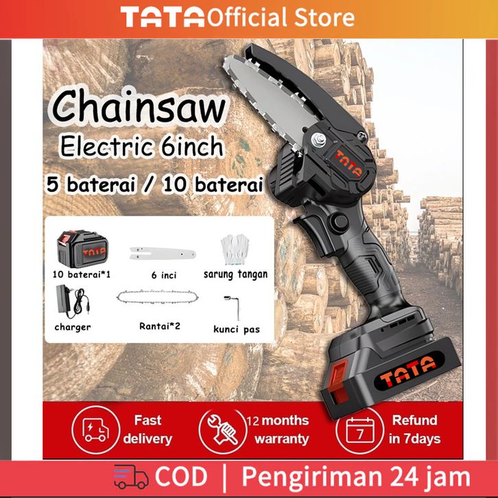 TATA Chainsaw Chainsaw 6 Inch Cordless Chainsaw 36V Gergaji Baterai Gergaji Rantai Elektrik Mini 2 baterai Gergaji List