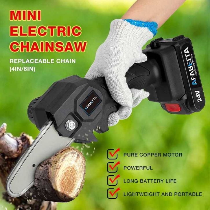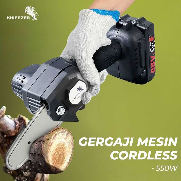 Cordless Mini Chain Saw 4" Gergaji Mesin Baterai 21V 550W