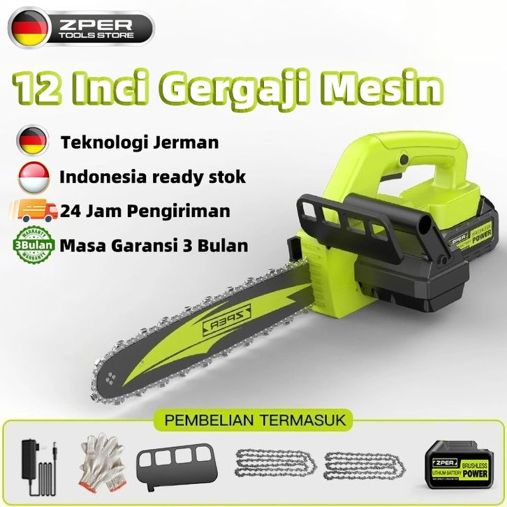 ZPER 12 Inci Gergaji Mesin Gergaji Kayu Super tajjam Listrik Cordless Chainsaw Baterai Lithium