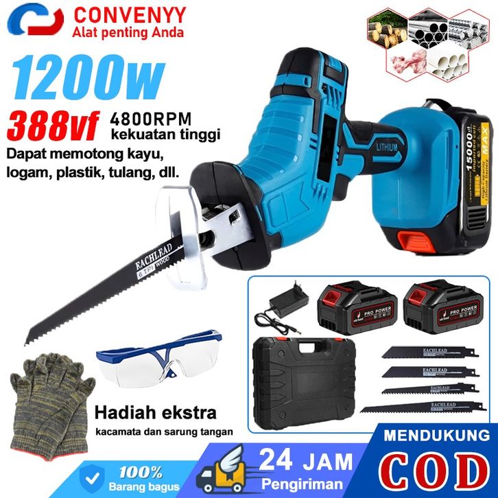Convenyy reciprocating saw cordless Portable genggam lithium charger gergaji mesin alat pemotong profesional Gergaji Me