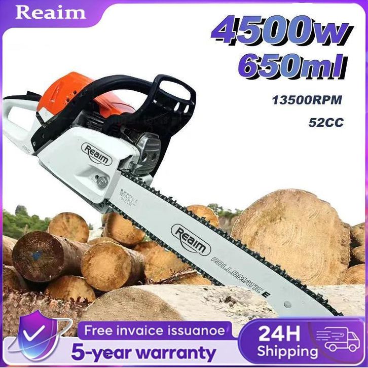 REAIM 52CC 2-Tak Chainsaw Profesional - Gergaji Mesin 20Inch untuk Potong Kayu, Pohon, & Pertamanan Anti-Getar, Sistem