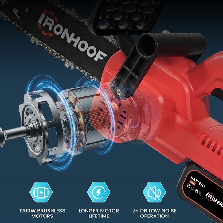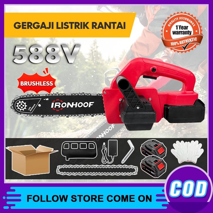 IRONHOOF Brushless 16 Inci Gergaji Mesin 588V Cordless Lithium Baterai Gergaji Kayu Chainsaws