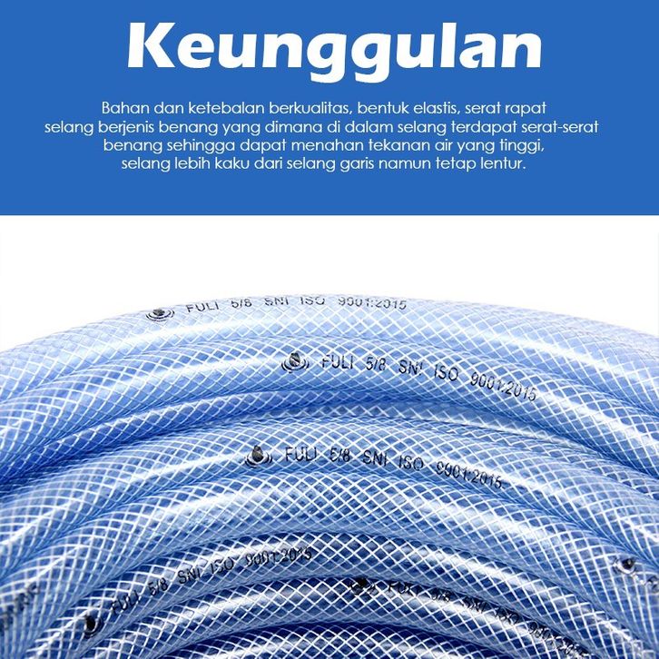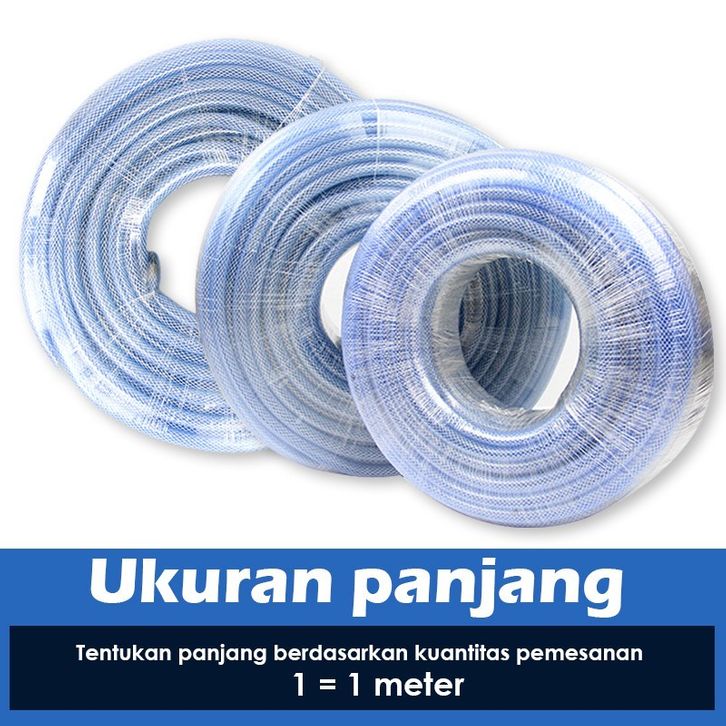 GEMUK Selang Air 50 Meter 100 Meter 1/2 5/8 3/4 1 Inch Selang Benang Transparan PVC Tebal Selang Cuci Motor Cuci Mobil