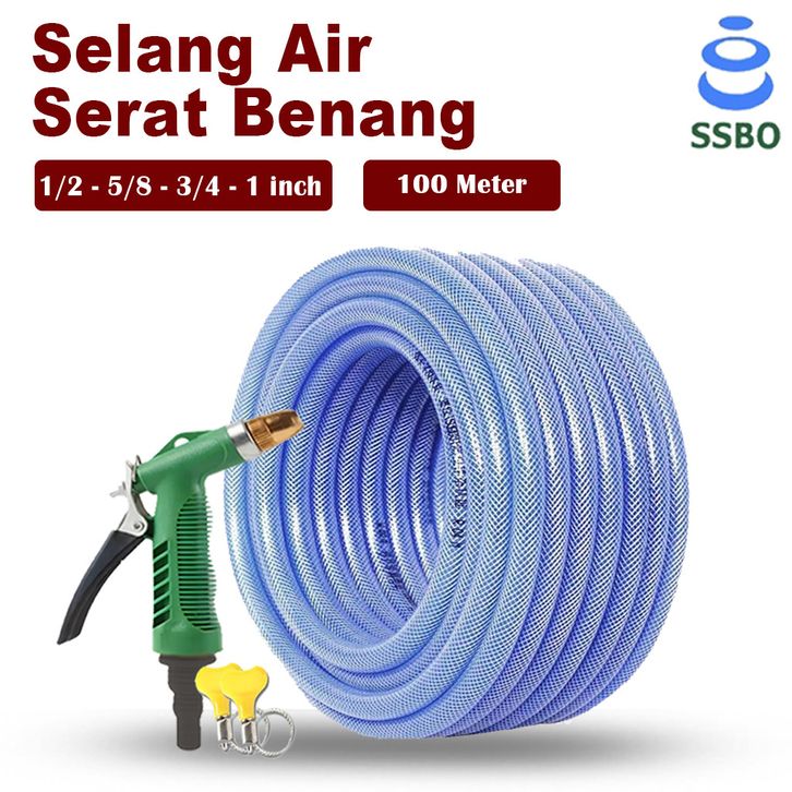 SSBO Selang Air 100 Meter/Selang Air 1/2 5/8 3/4 1 Inch/Selang Air Taman Serat Benang Berkualitas