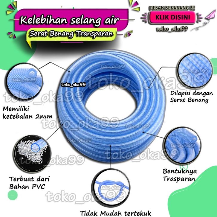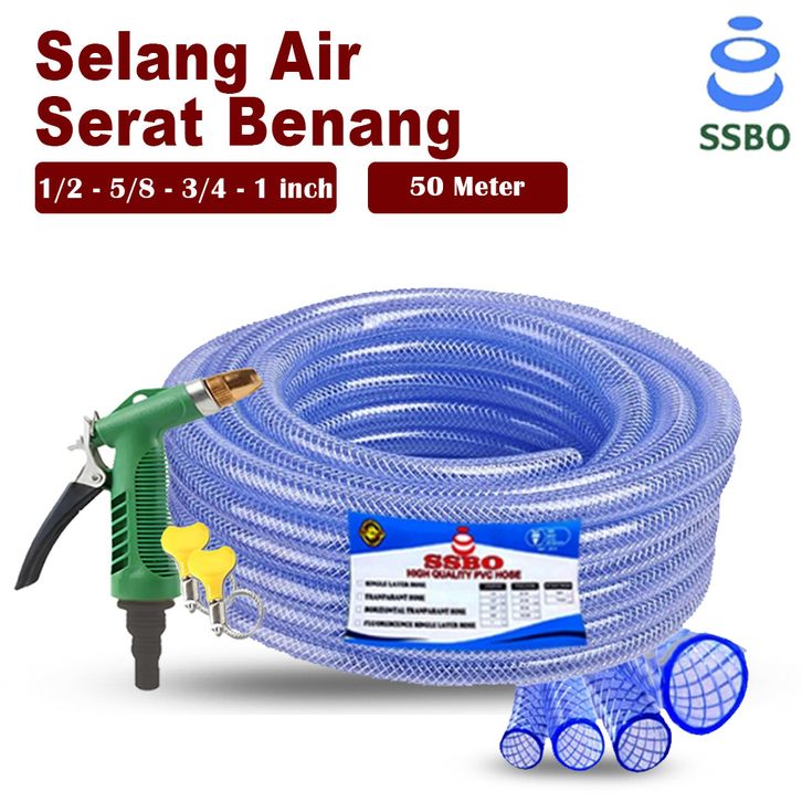 SSBO Selang Air 50 Meter / Selang Air 1/2 5/8 3/4 1 Inch / Selang Air Serat Benang / Selang Air Taman