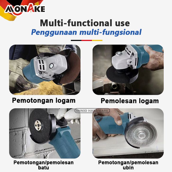 MONAKE Alat Jerman Mesin Gerinda Tangan 4 inch 100mm Angle9rinder MK0403 mini9rinda