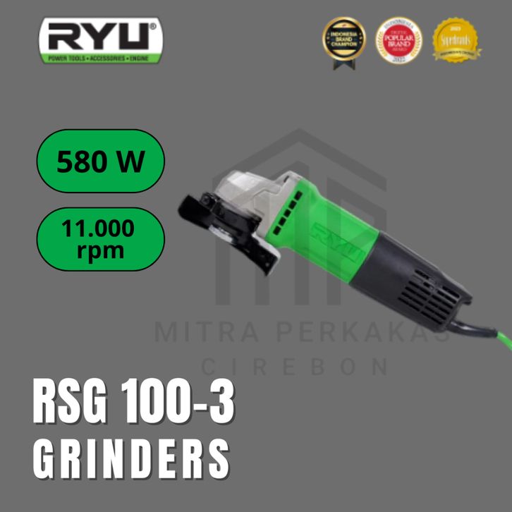 RYU Mesin Gerinda Tangan 4 Inch / RSG 100-3 Angle9rinders 4" Gurinda Promo Free Batu Potong Poles 4 inch9rinder Tekiro