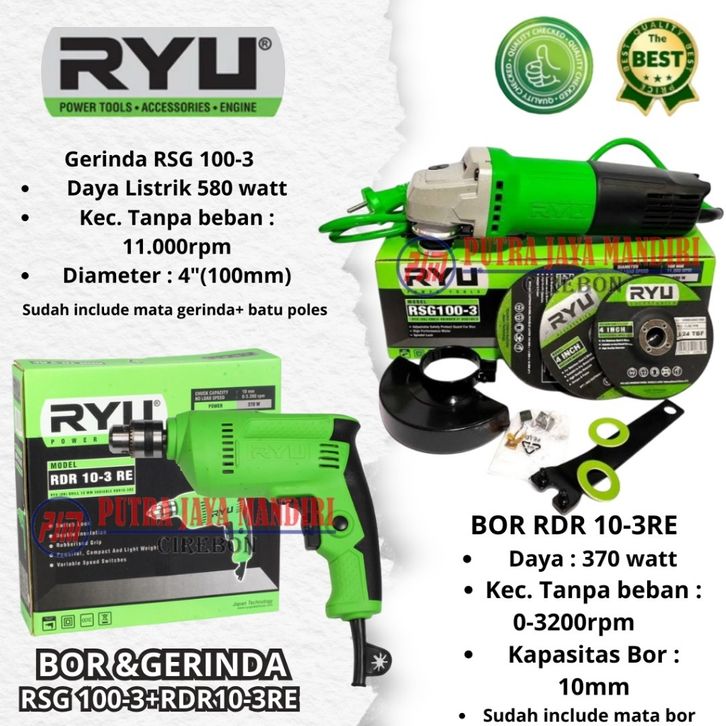 Paket Ryu Gerinda Tangan Dan Bor 10 MM RDR 10-3 RE RSG 100-3 4 Inch