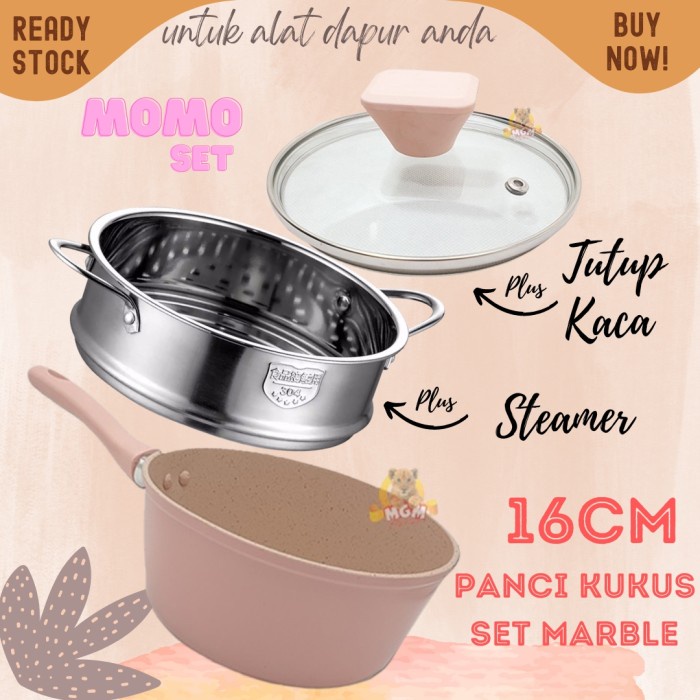 Set Panci Susu Marble 16cm with Kukusan dan Tutup Serbaguna Panci MPASI MOMO