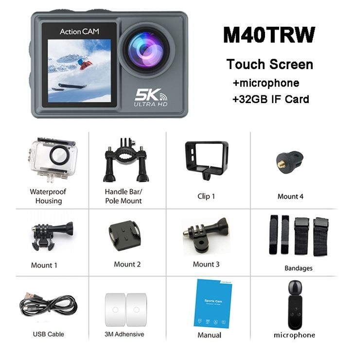 AT-M40R 5K 30FPS Sports Action Camera Dual Screen EIS Remote Control WiFi 170° Wide Angle 30M Waterproof Diving