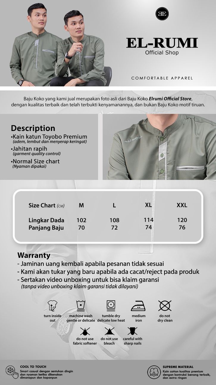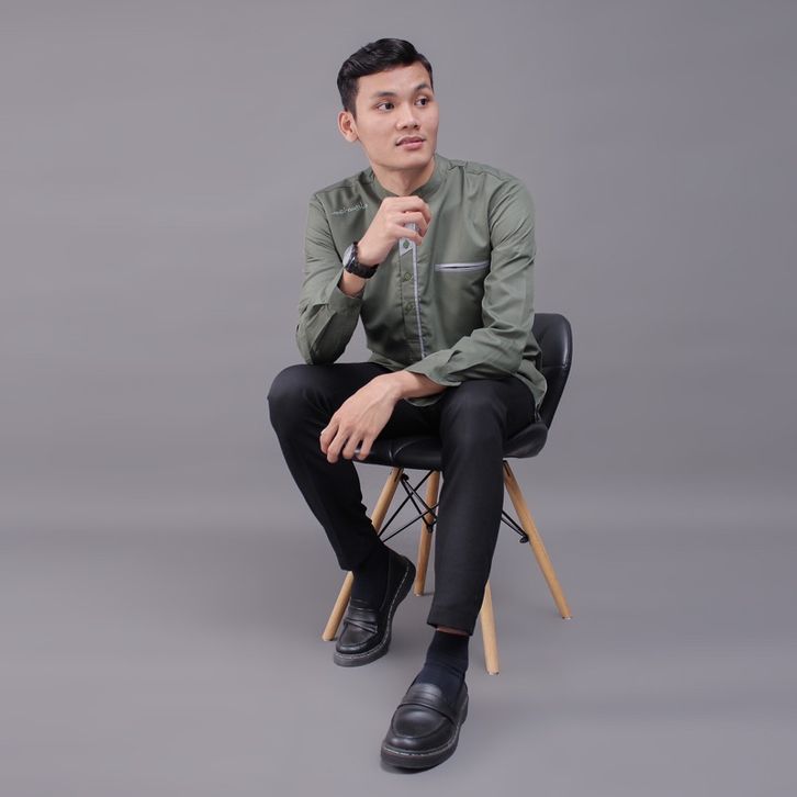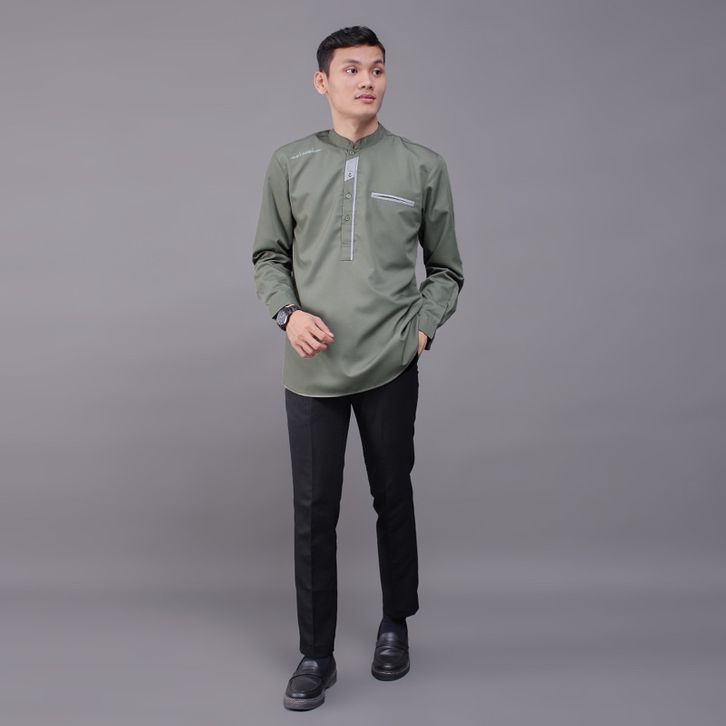 Kemeja Koko Pria Elrumi Lengan Panjang Motif Abizaar Warna Sage