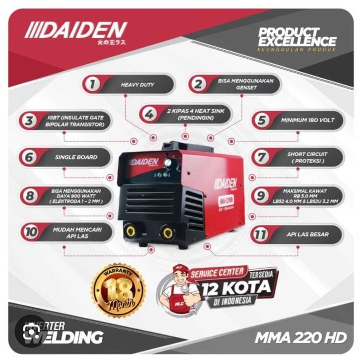 Mesin Las Inverter DAIDEN MMA 220HD Trafo Las Listrik 900watt