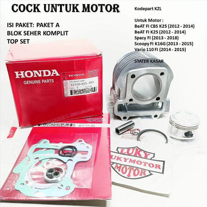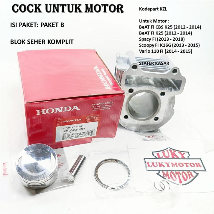 BONUS PAKET/ BLOK SEHER KOMPLIT PISTON & TOPSET BEAT FI , SCOOPY FI , VARIO 110 FI , SPACY KODE PART KZL STATER KASAR