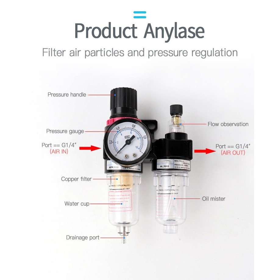 Filter Udara Pengatur Tekanan, Pemisah Air Minyak Perangkap Kompresor Udara FILTER Airbrush Kompresor AFC2000 AFR2000