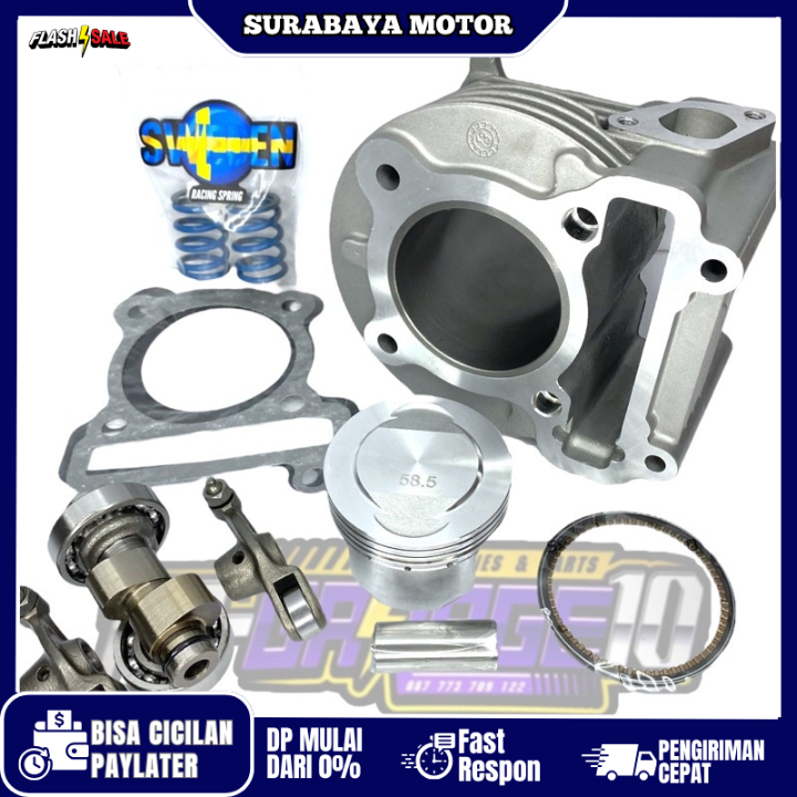 PAKET BLOK SEHER BORING OREUP MIO NOUVO PISTON 58,5 155 CC SET NOKEN AS RACING PER KLEP RACING KOMPLIT