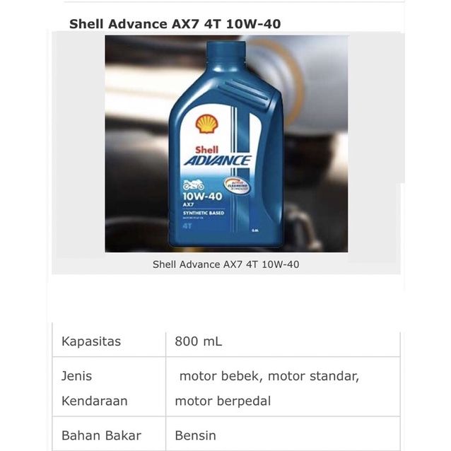 Shell Advance AX7 Scooter 10W40 MB 800ml 4T Oli mesin matic