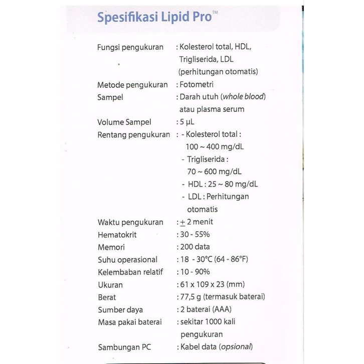 LipidPro Alat Cek Kolesterol Trigliserida HDL LDL Meter Lipid Pro Test TG Trygliceride