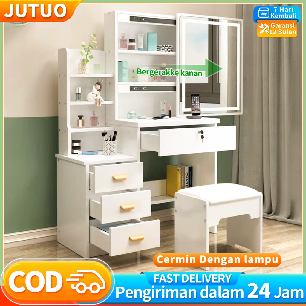 ⭐Spesial Waktu Terbatas & Meja Rias Kaca Sliding & Dengan Lampu LED⭐ JT Putih Meja Rias Kaca Sliding Dengan Lampu LED