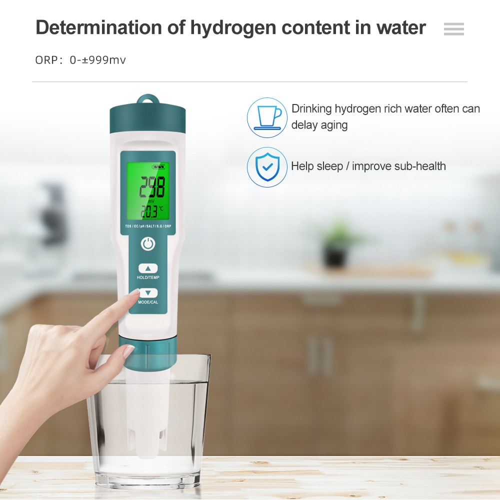 Multifungsi 5/7 in 1 Pena Pengukur Digital Kualitas Air dengan Monitor Salinitas dan Termometer untuk Akuarium Air Min
