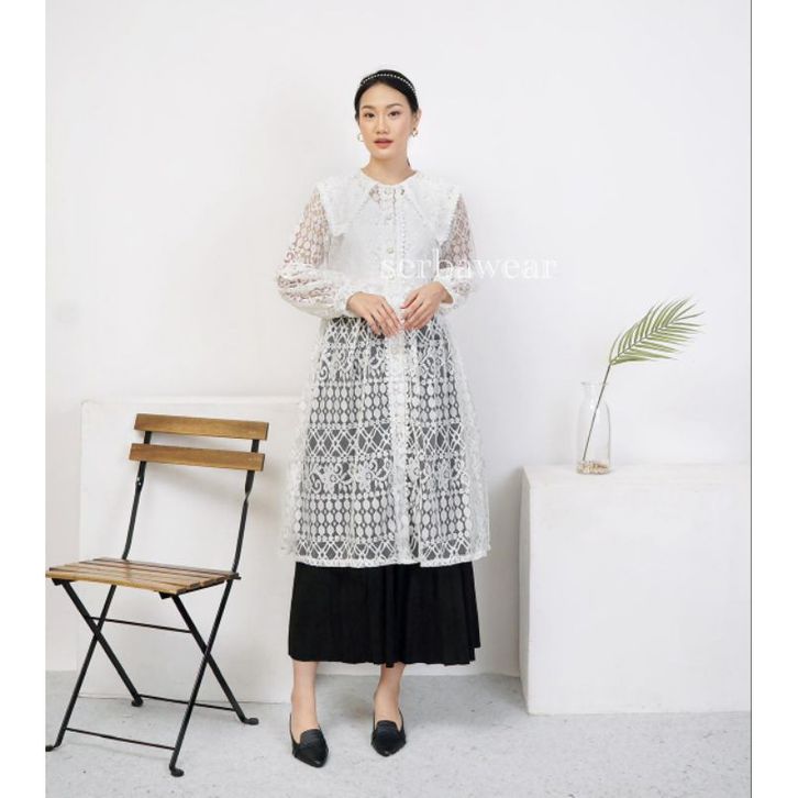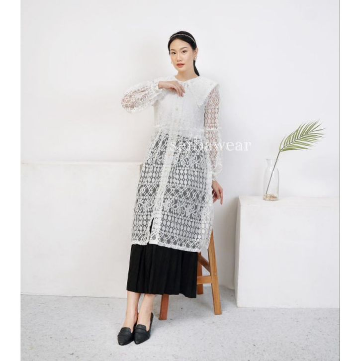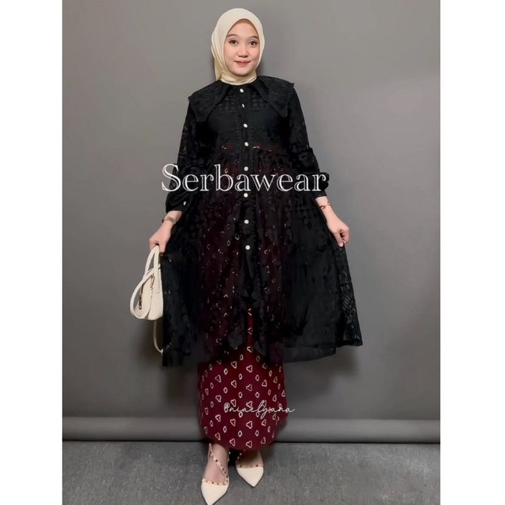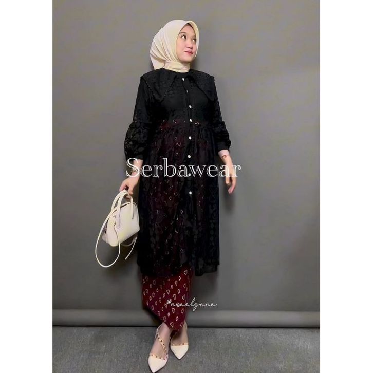 Tunik Aurella Outer Brokat Lace Brocade New Outfit Atasan Baju Kondangan Wanita Modern Simple Elegan Terbaru Kekinian