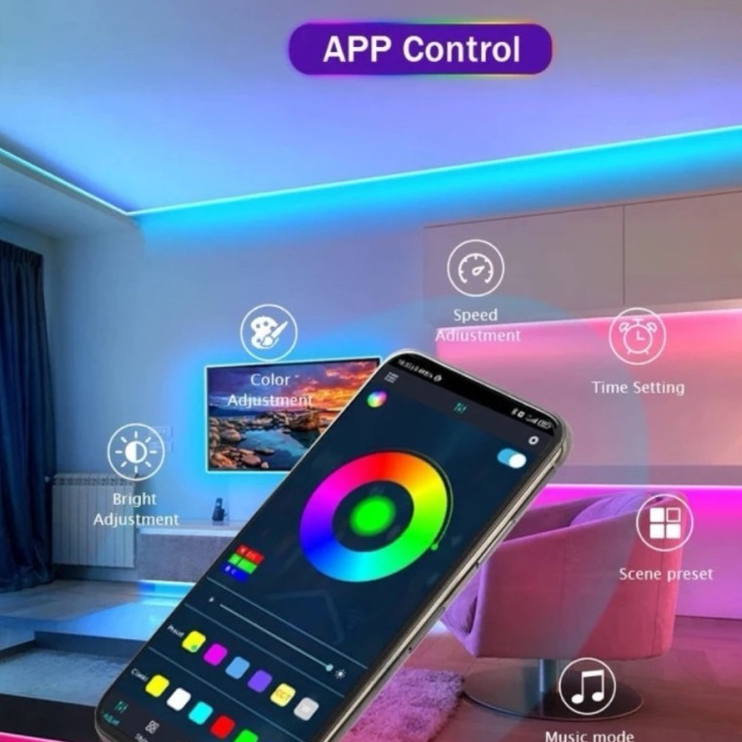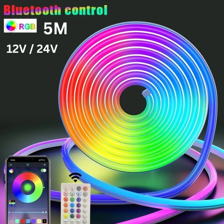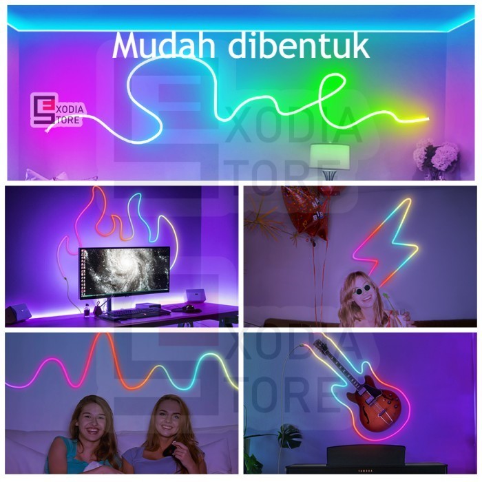 Paket LED Neon Flex Running RGB 5m 5 Meter DC 5V + Adaptor + App Control + Remote Control LED Neon Flex Tinggal Colok