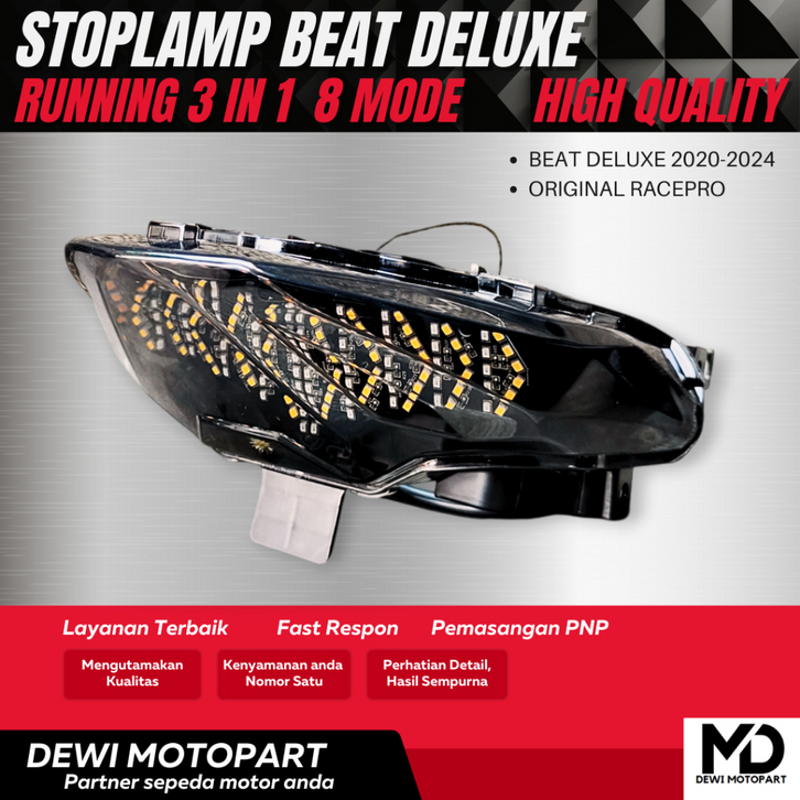 Stoplamp Running Beat Deluxe Racepro 8 Mode Auto Manual Led Merah Running 3in1 Dewi Stoplamp Lazy Beat Deluxe Rgb