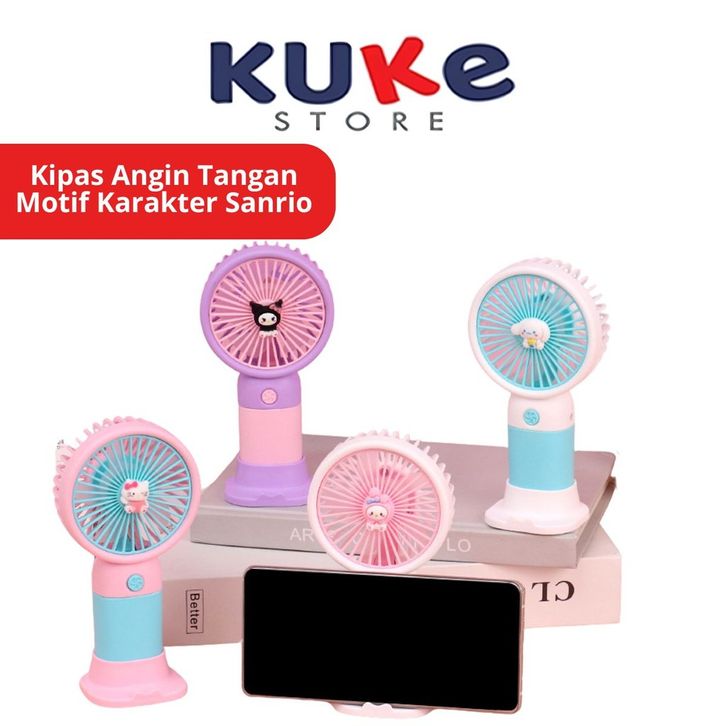 Kipas Angin Genggam Motif Sanrio Mini Fan Portabel USB Stand / Kipas Tangan Anak Rechargeable