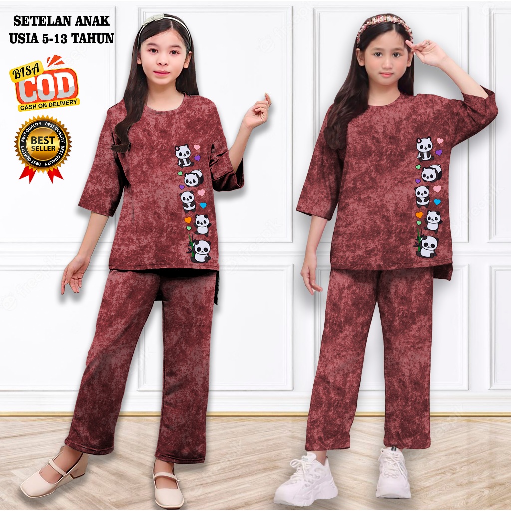 Setelan Anak Perempuan Panda Love Usia 5-13 Tahun Setelan Anak Hoshi