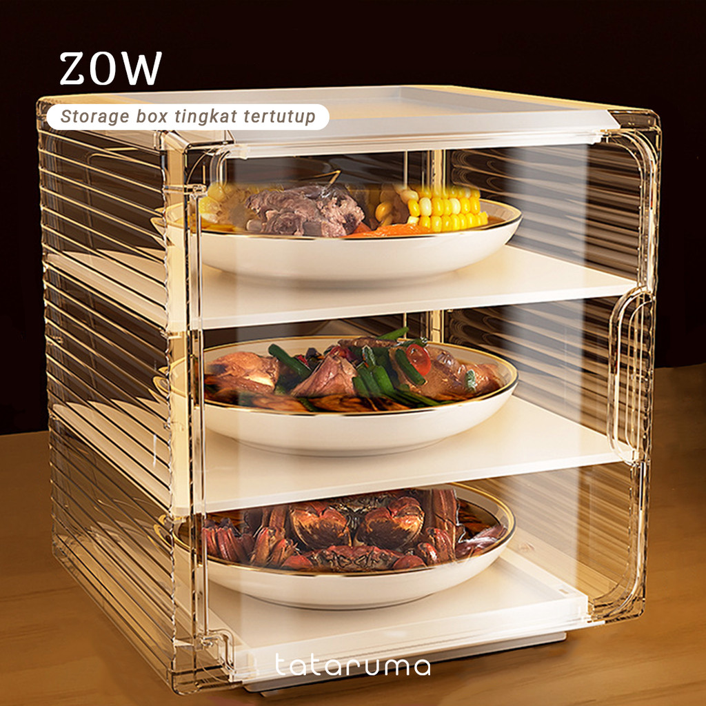 TATARUMA Zow - Food Storage Tertutup Tempat Sayuran Lauk Tingkat Susun Bebas Debu Hemat Tempat