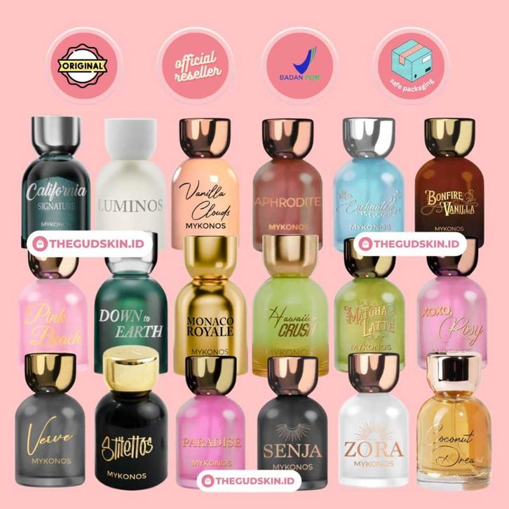 Adelina, Aphrodite, Baby Love, Bery Caramel Pancake, Blossom, Bonfire Vanilla, Cafe Drops, Caramel Fudge Cookie, Chai Cream Latte, Coconut Dream, Down To Earth, Enchanted, Glitch, Invade, It's Not Ella, Ivory, Luminos, Macha Latte, Milk Drops, Pandan Sticky Rice, Paradise, Pink Beach, Pink Drops, Pistachio Cream Cake, Rouge X Sapeyee, Senja, Slow Living EDP, Stilletos, Vanilla Cloud, Verve, When In Paris, Xoxo Rosy, Zora