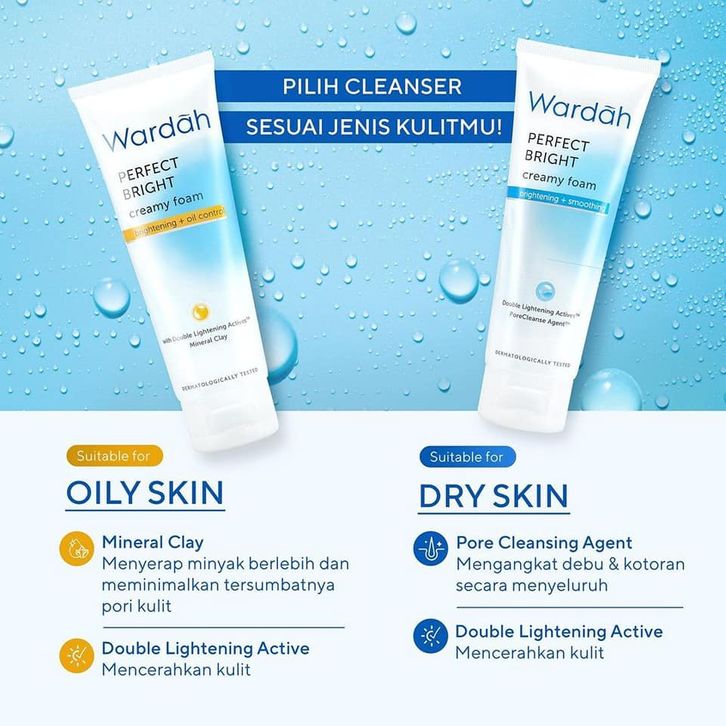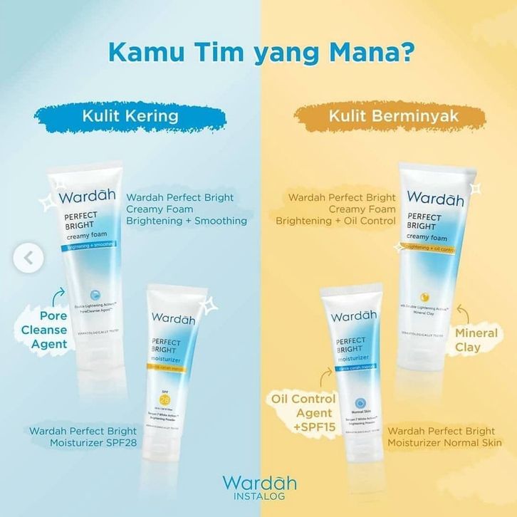 Paket Wardah Perfect Bright Complete Skincare Package - For Dry/Oily Skins Creamy Foam/ Moisturizer/ Micellar Water/BB