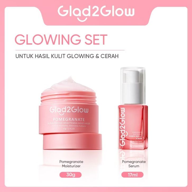 BUNDLE COMBO GLAD2GLOW Bright Serum 17mili & Moisturizer Pomegranate 30gr