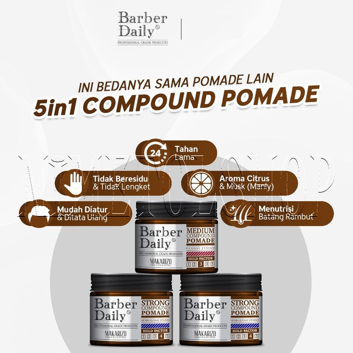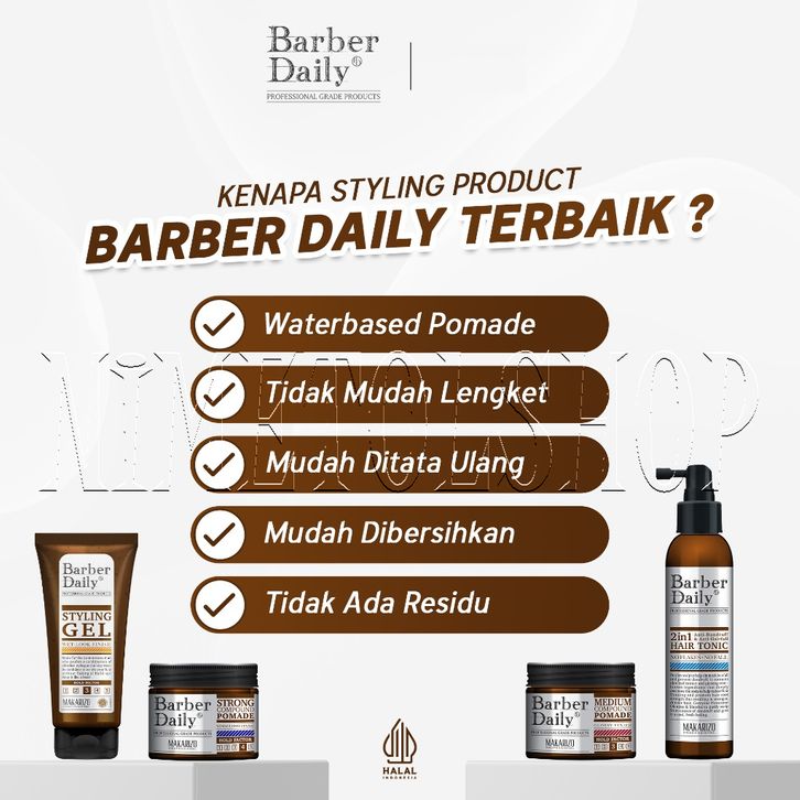 MAKARIZO Barber Daily Pomade 120mili Water Based Medium Strong Compound Hold Semi Glossy Finish